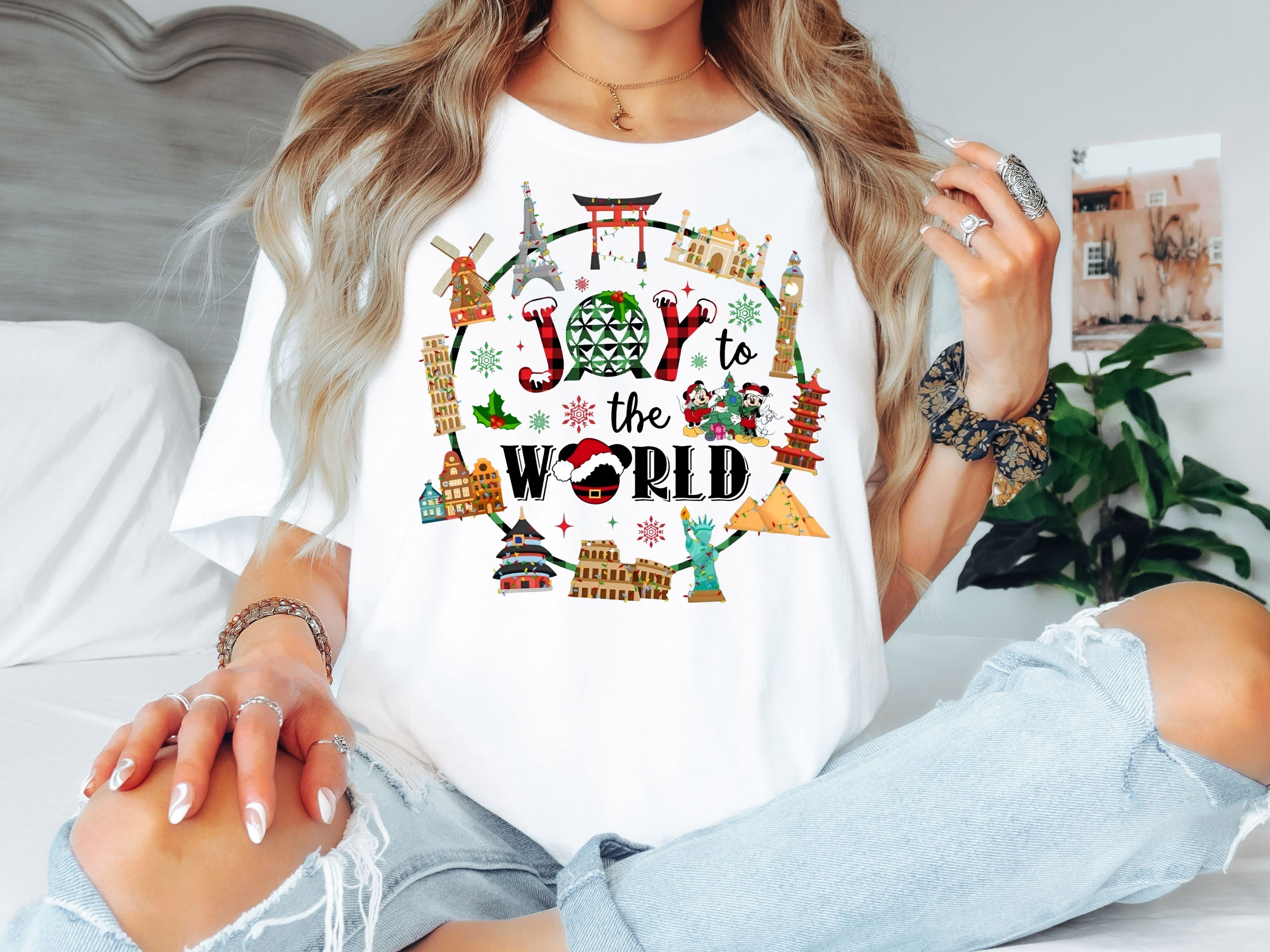Joy to the World T-Shirt | Christmas Around the World Tee | Holiday Travel Theme Shirt for Adults & Kids-7C042