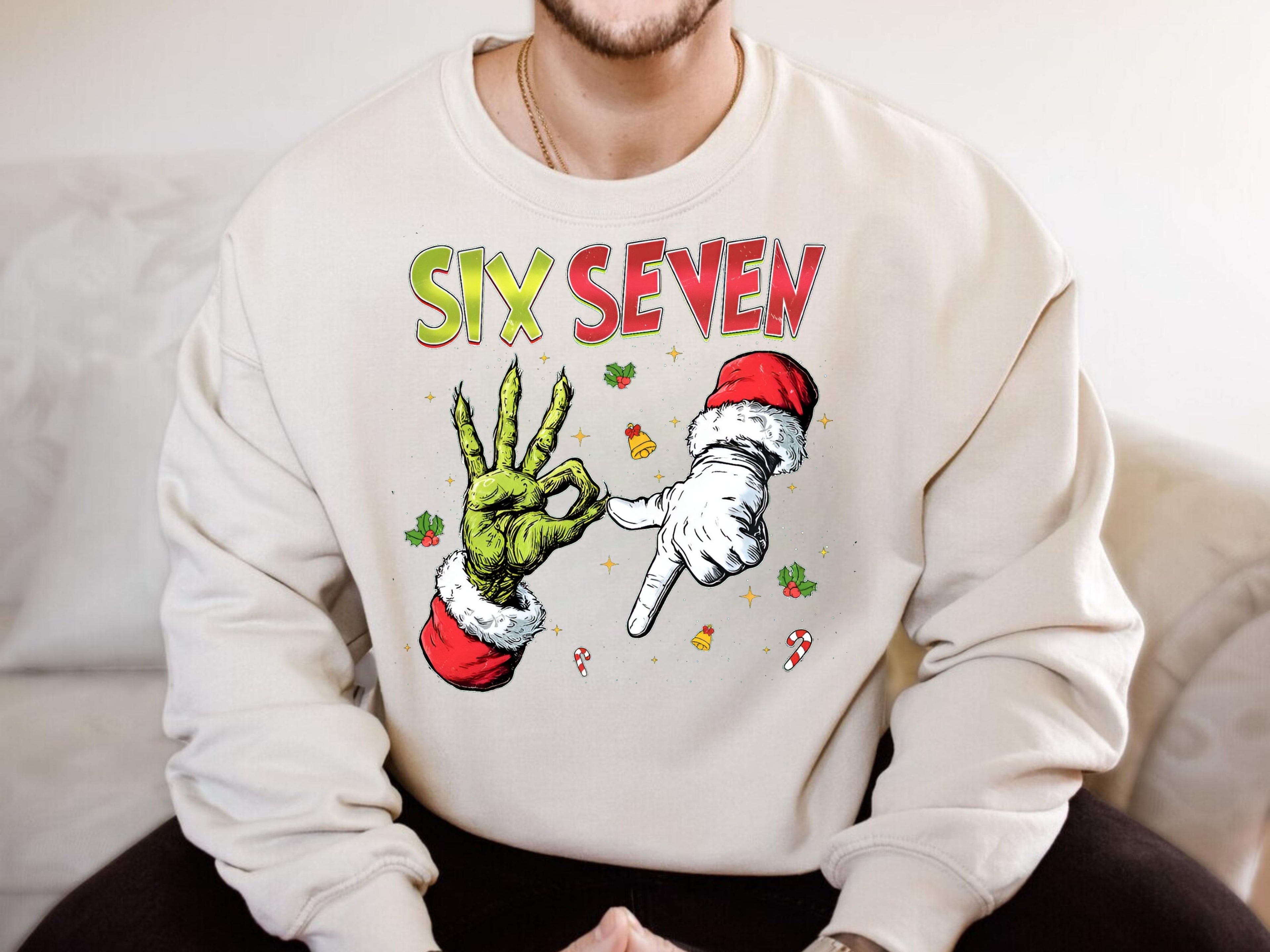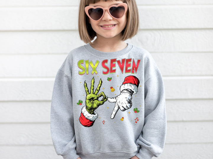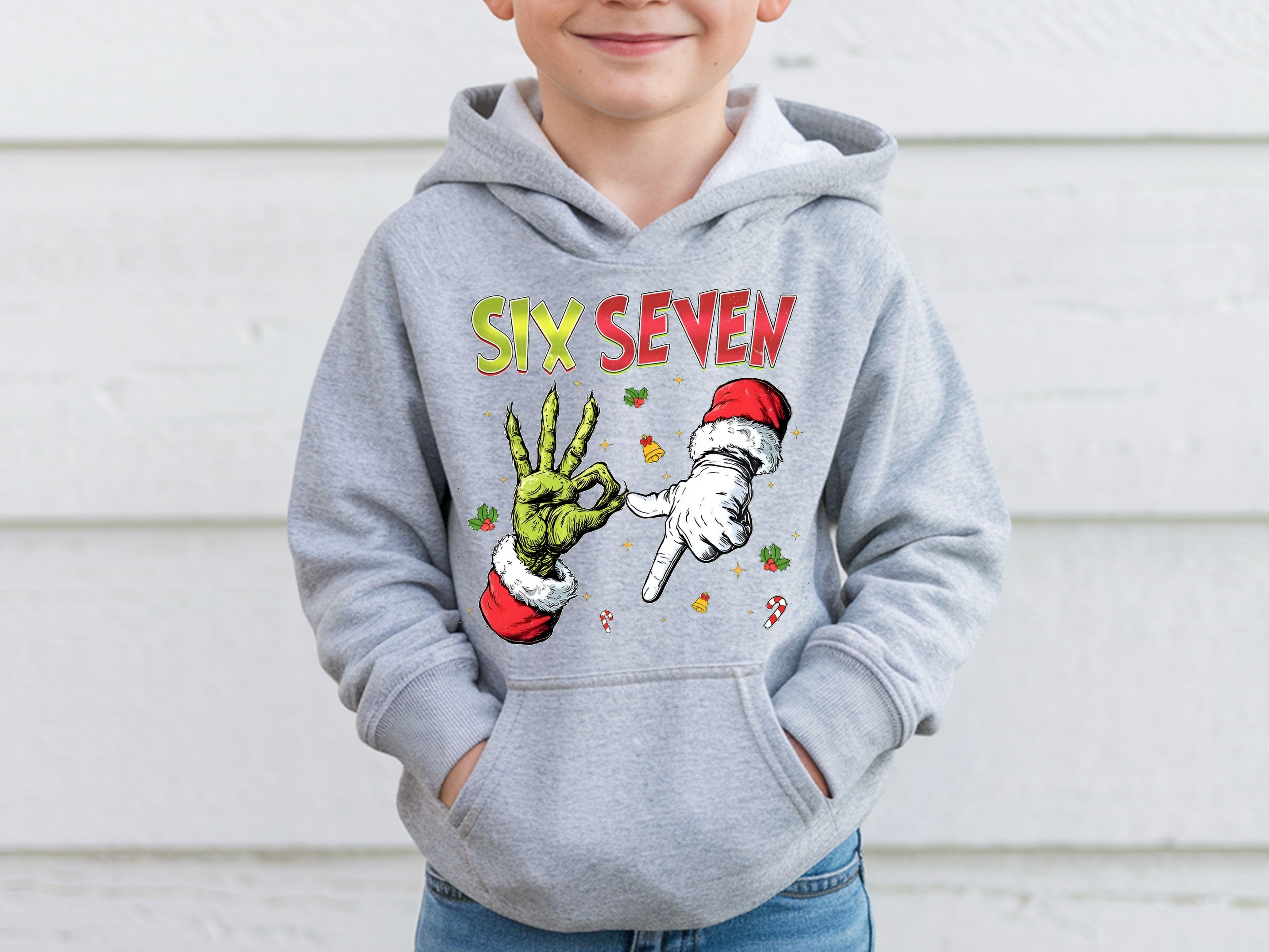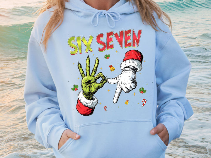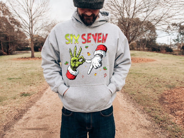 Six Seven Christmas Hoodie & Sweatshirt | Funny Grinch Santa Hands Pullover | Cool Holiday Outfit for Adults & Kids-7C038
