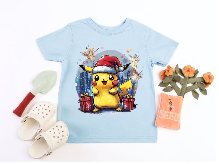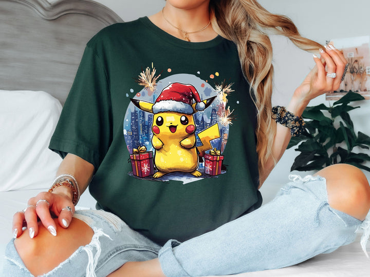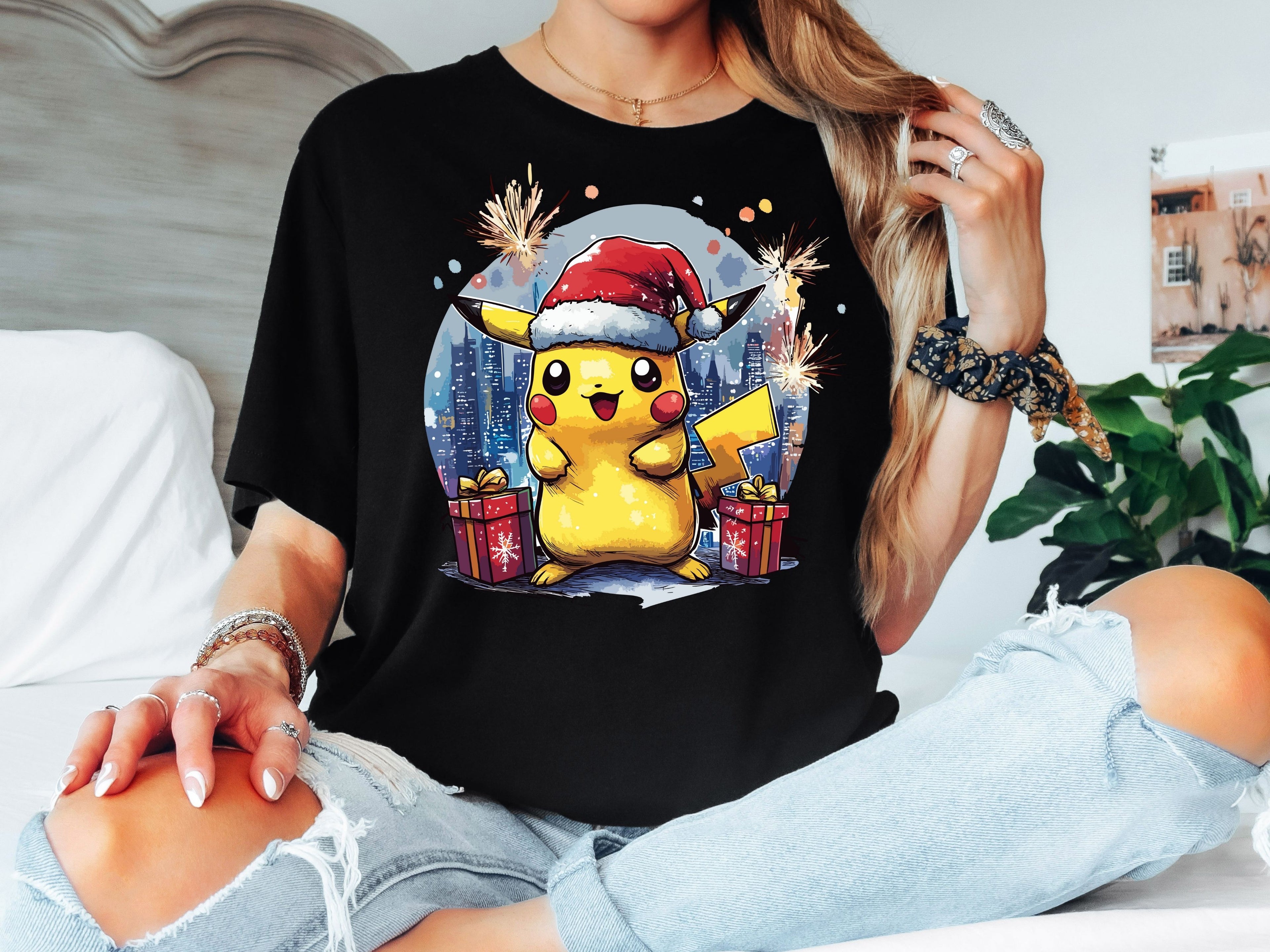 Pikachu Christmas T-Shirt | Cute Holiday Anime Tee | Pokémon Santa Hat Christmas Shirt-7C066