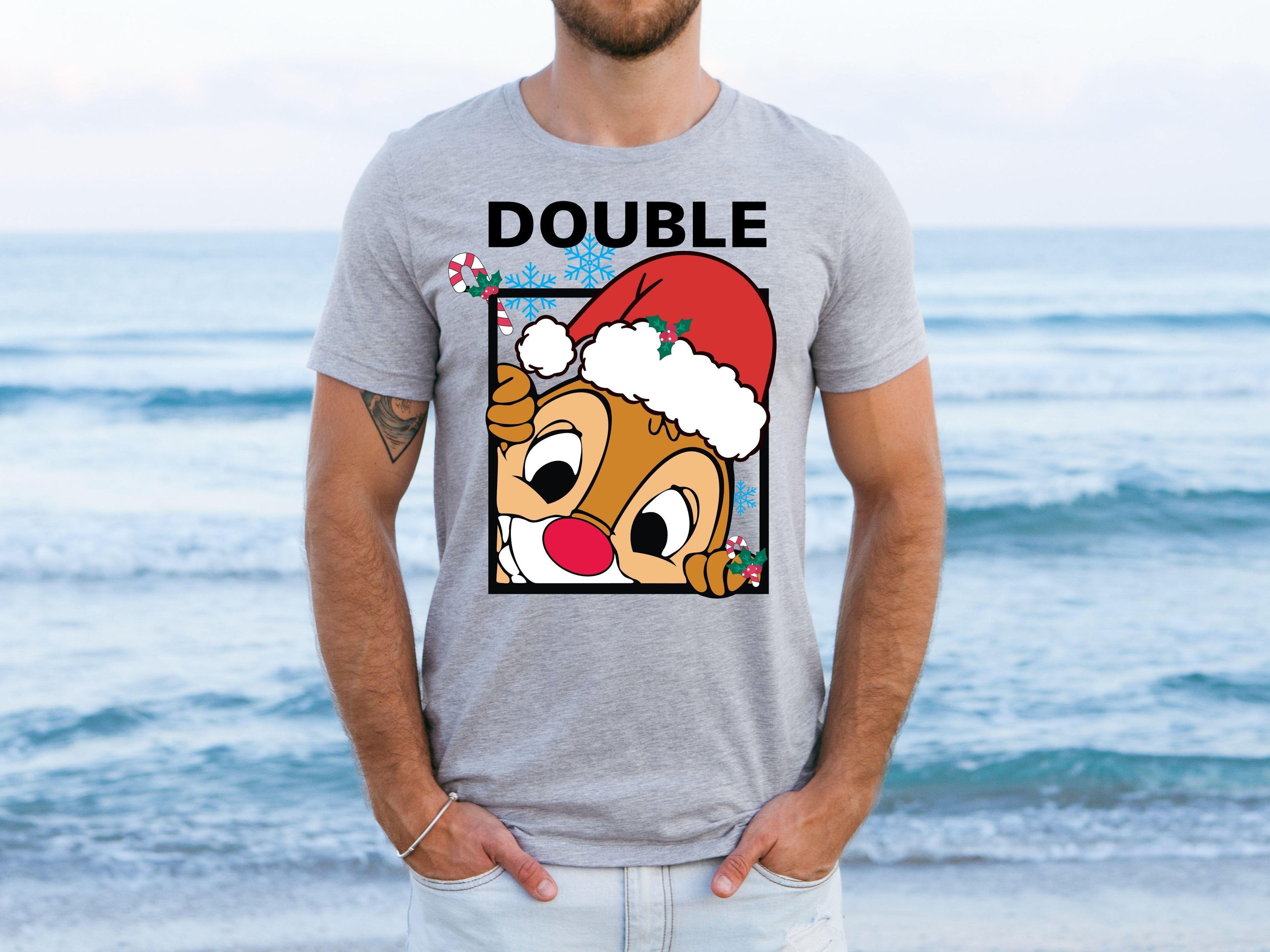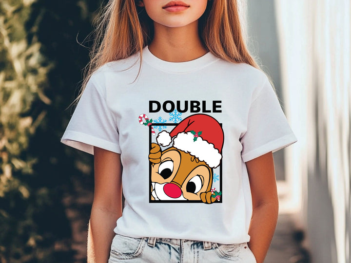 Christmas Chipmunk T-Shirt | Cute Holiday Cartoon Tee | Funny Santa Hat Peek Christmas Shirt-7C071