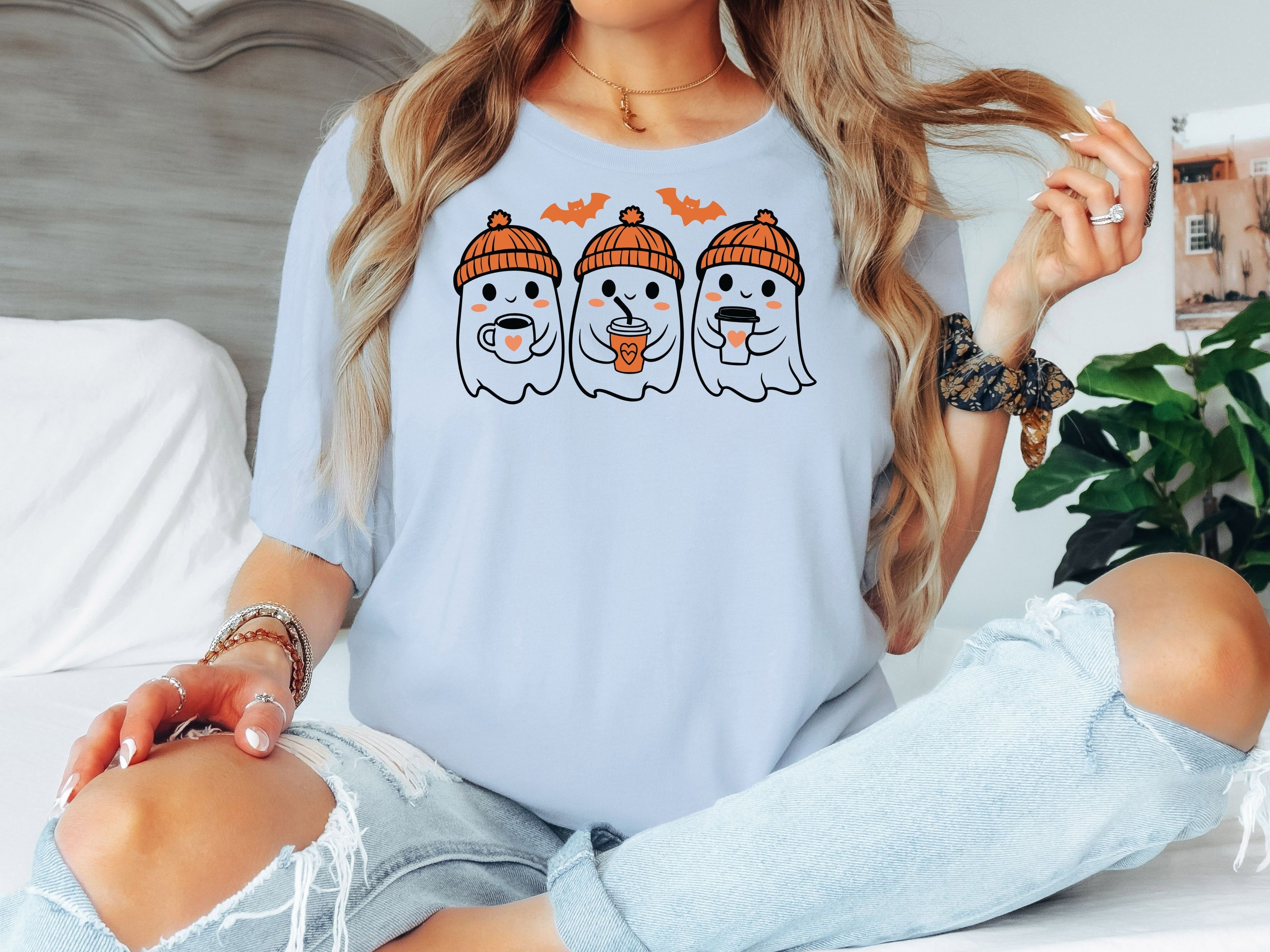 Cute Ghost Coffee Halloween Shirt | Unisex & Women Adult T-Shirt | Youth, Toddler, Baby Tee & Unisex Bodysuit | Fall Spooky Season Graphic Tee-70016