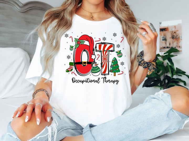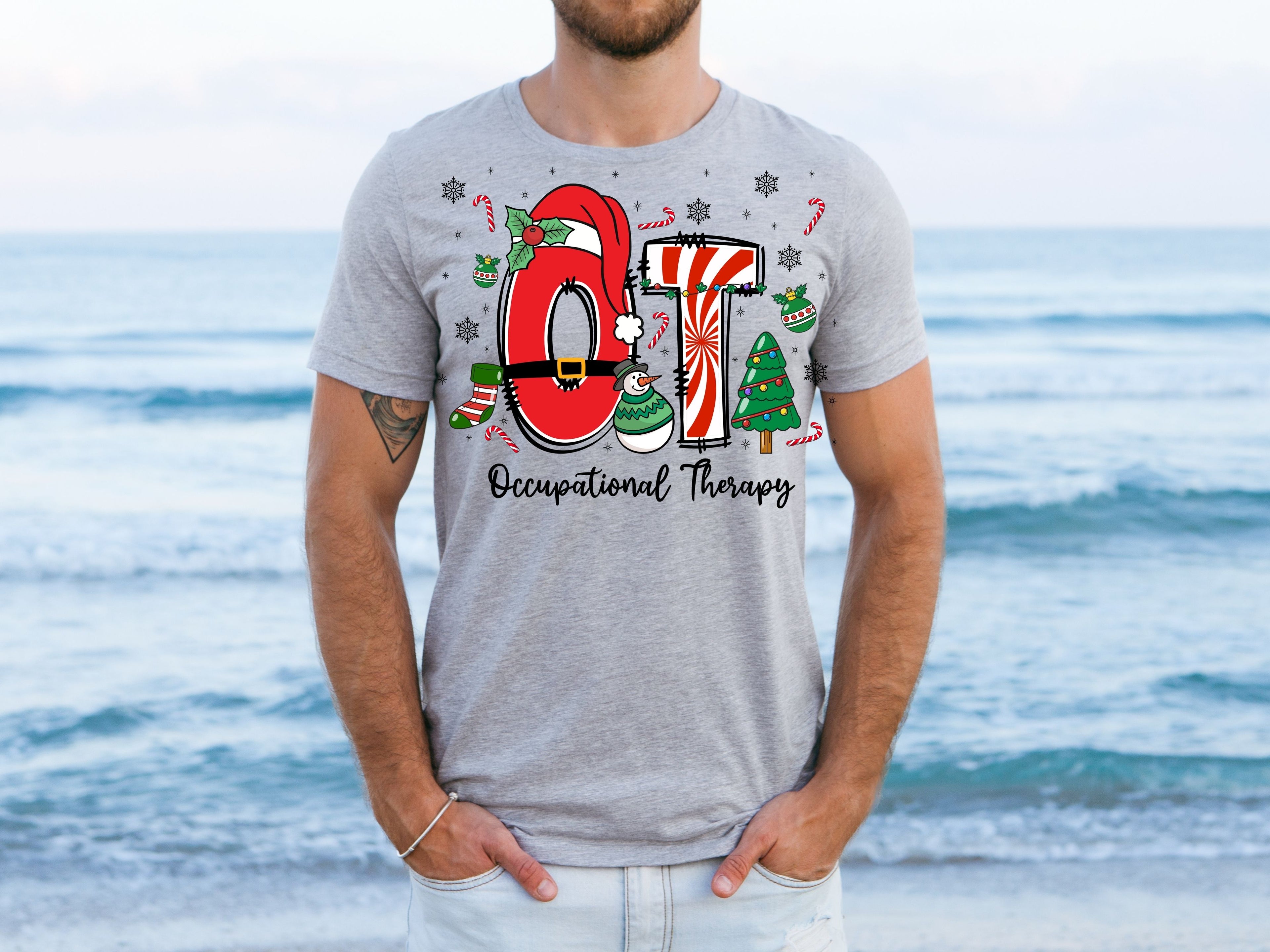 Christmas OT T-Shirt | Occupational Therapist Holiday Tee | Cute Festive Santa Tree Candy Design Shirt-7C057