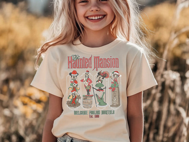 The Haunted Mansion Christmas T-Shirt | Disney Style Holiday Tee | Welcome Foolish Mortals Spooky Christmas Shirt for Adults & Kids-7C0007