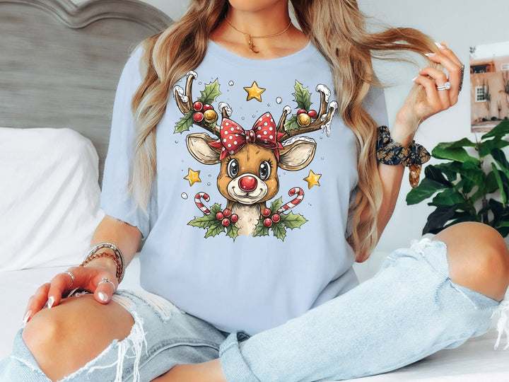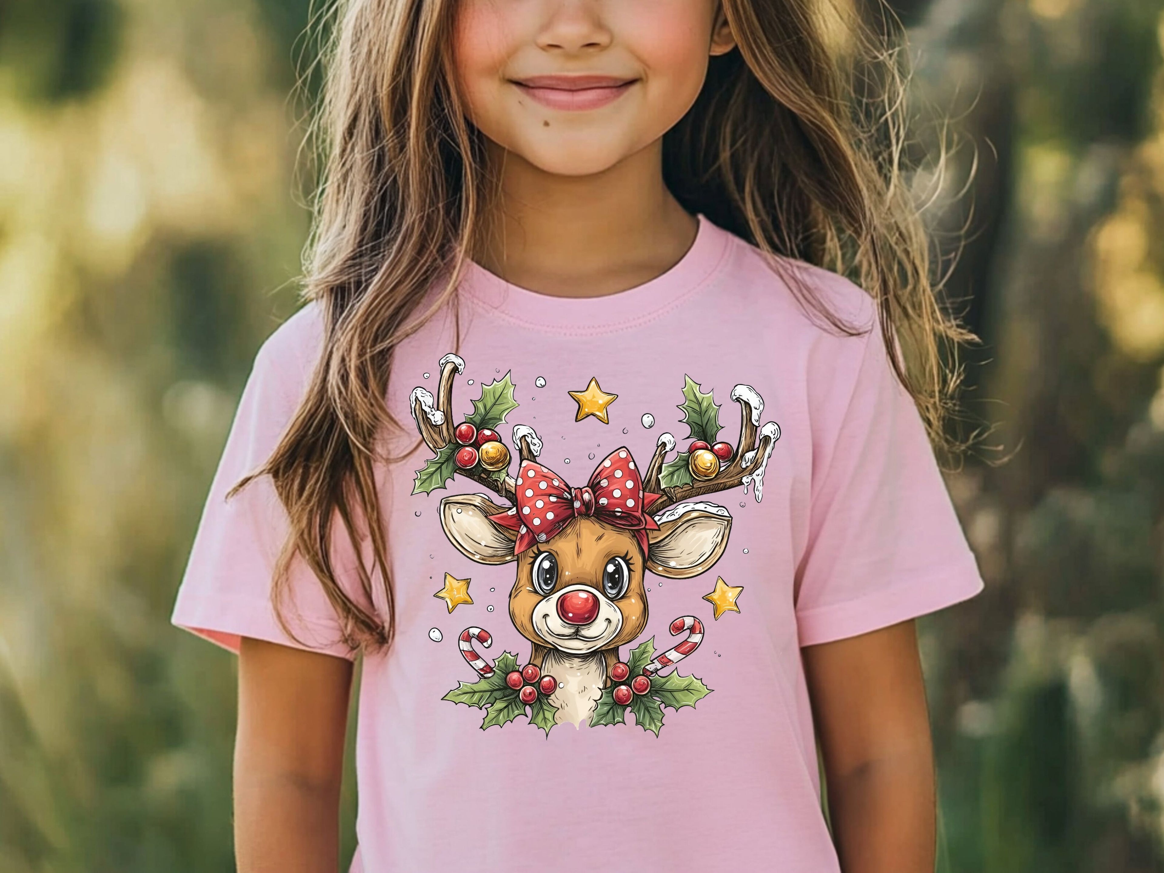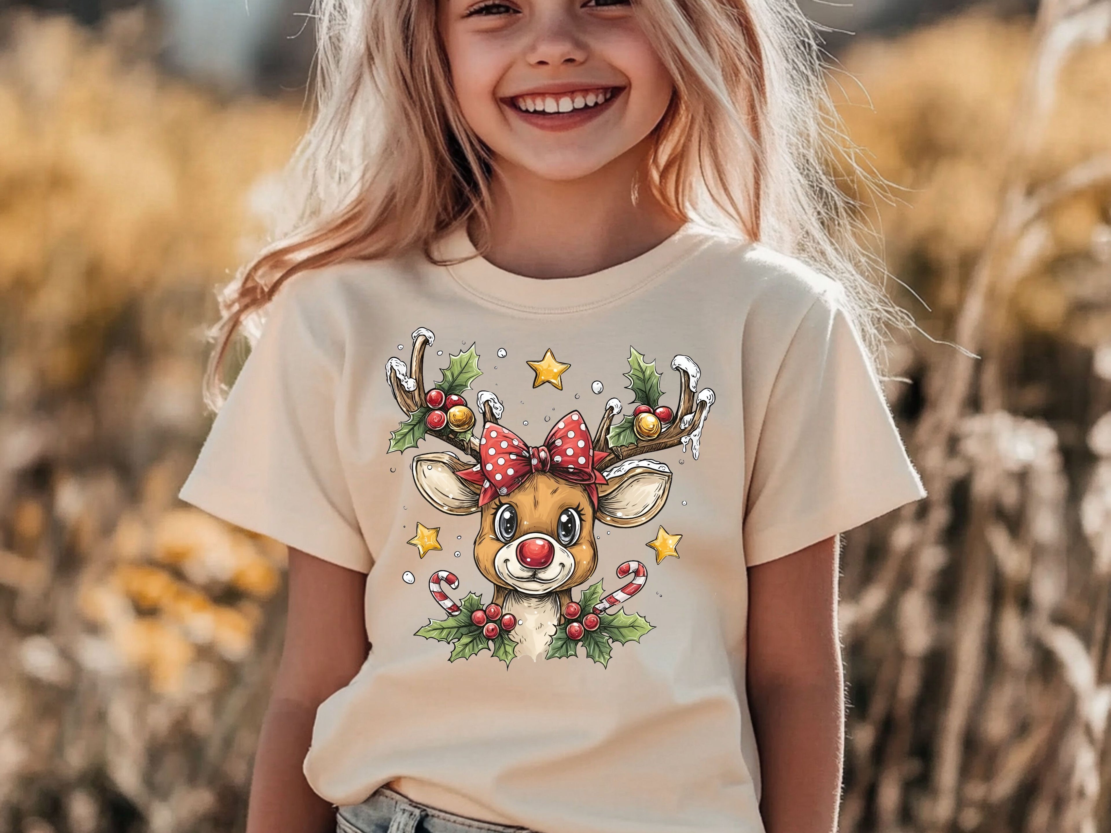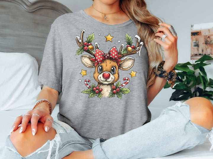 Cute Christmas Reindeer T-Shirt | Rudolph Style Holiday Tee | Festive Family Matching Christmas Shirt for Adults & Kids-7C039