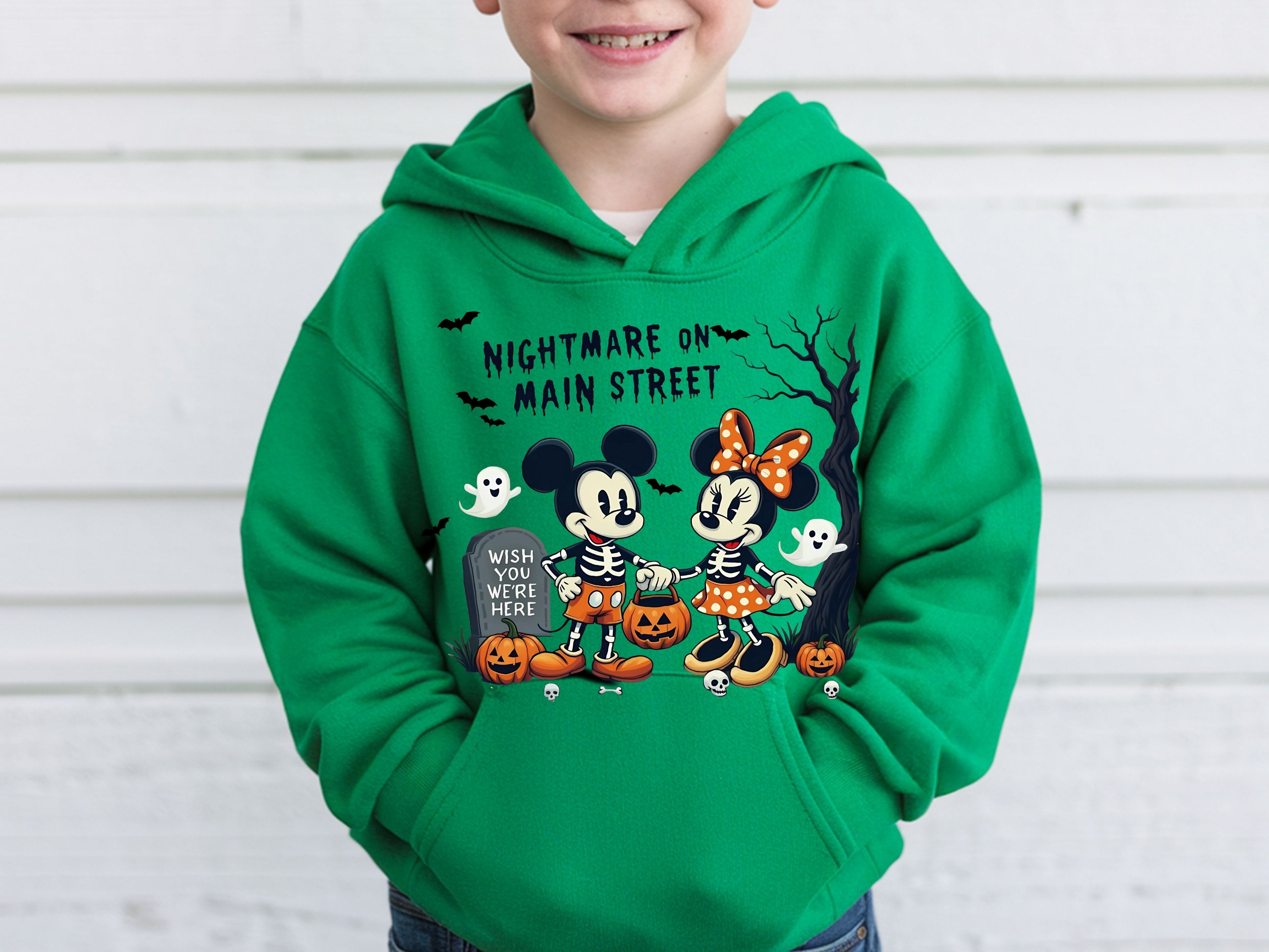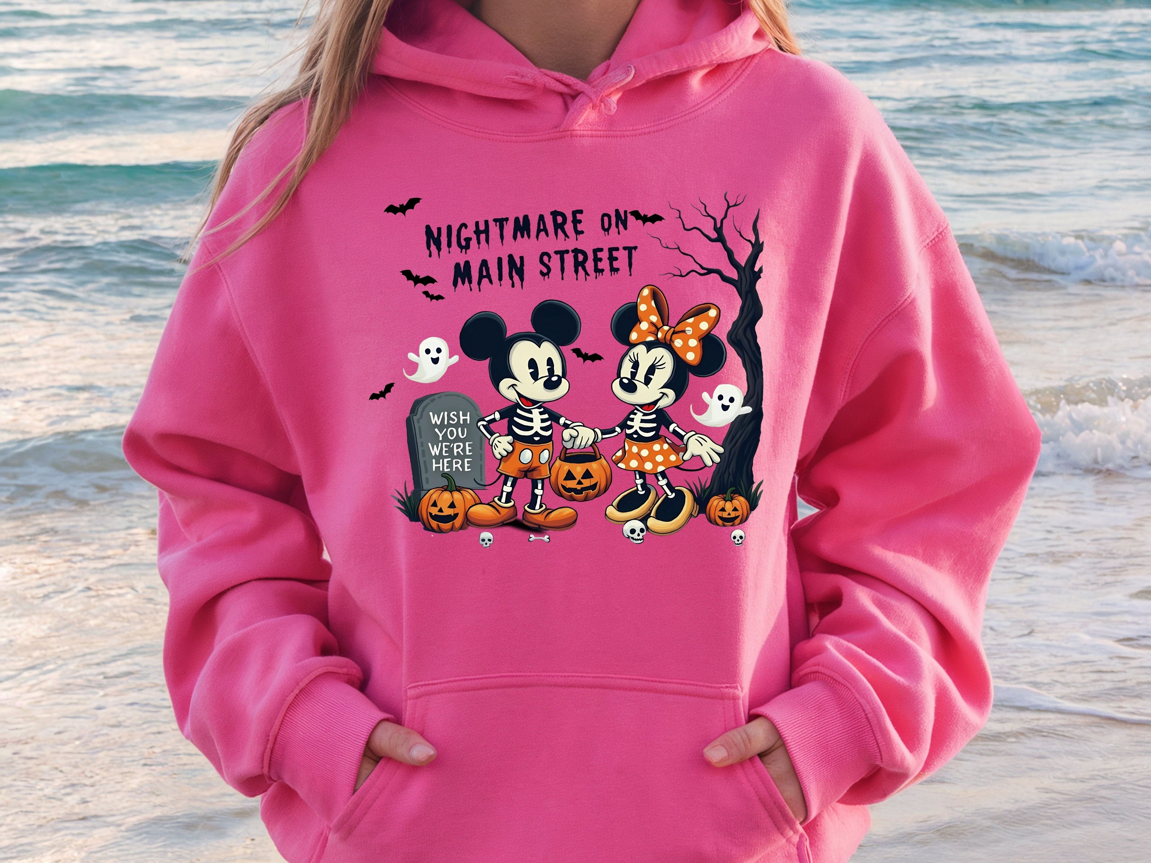 Nightmare on Main Street Halloween Sweatshirt Hoodie | Matching Mickey & Minnie Halloween Pullover | Adult Unisex, Youth, Toddler | Family Halloween Outfit-70051
