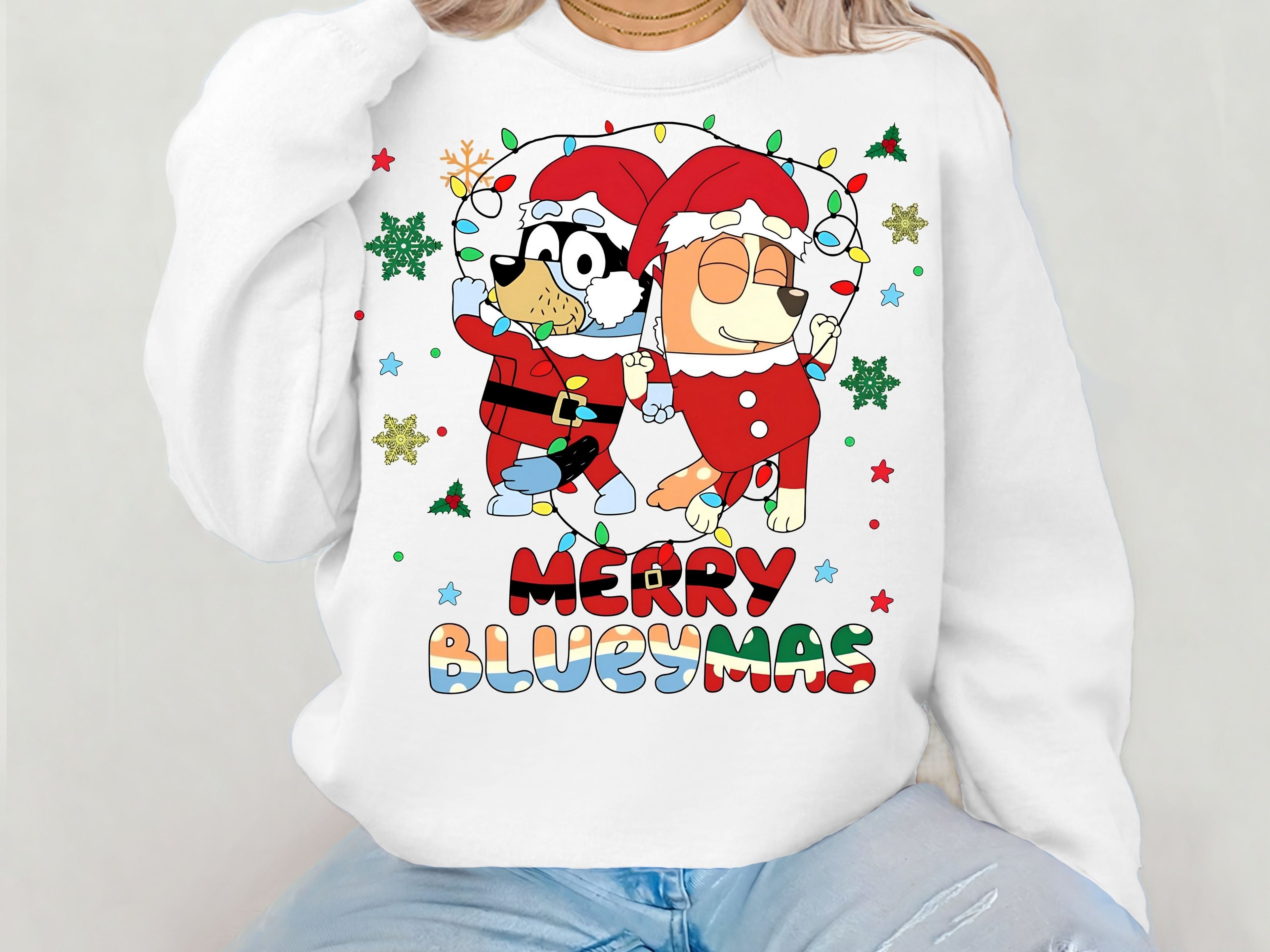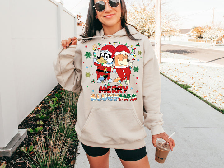 Bluey Christmas Hoodie | Merry Blueymas Family Outfit | Cozy Winter Hoodie for Adults & Kids-7C005