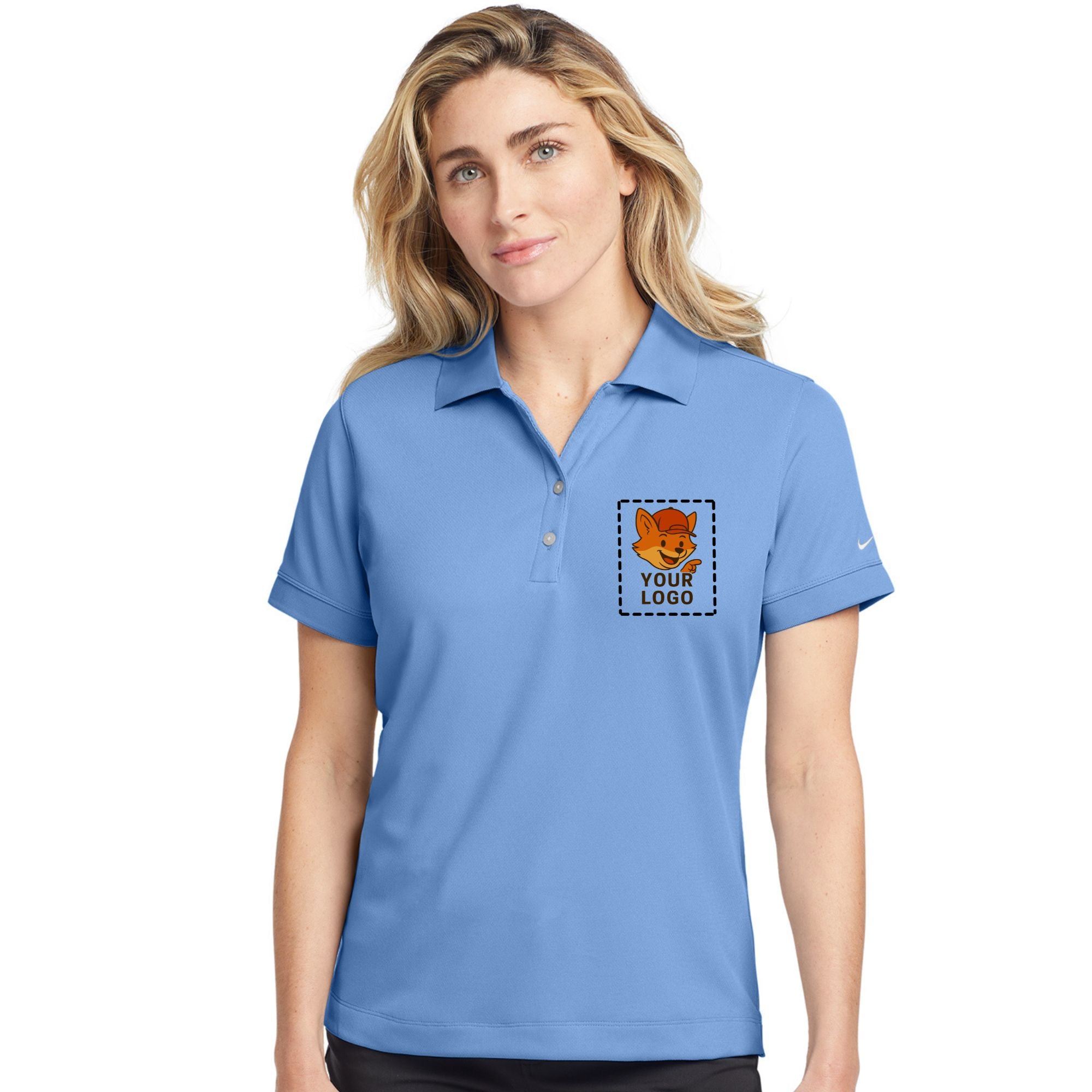 Nike is known for classic polos engineered for maximum comfort. The Dri-FIT fabric technology delivers superior moisture management, while the stitch-trimmed shoulder panels and gussets make a distinctive difference. Flat knit collar. Tailored for a feminine fit with a two-button Y-placket and flat knit cuffs. Pearlized buttons are selected to complement the shirt color. The contrast Swoosh design trademark is embroidered on the left sleeve. Made of 4.7-ounce, 100% polyester Dri-FIT fabric.