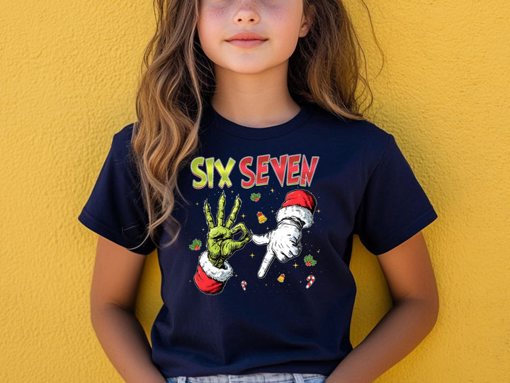 Six Seven Christmas T-Shirt | Funny Grinch Santa Hands Holiday Tee | Cool Christmas Shirt for Adults & Kids-7C038